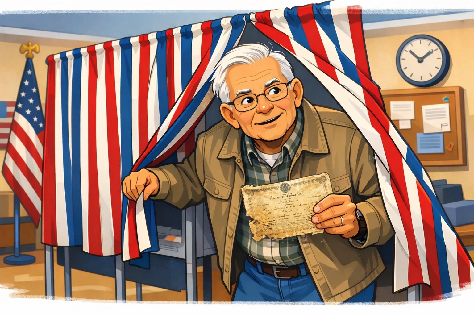 Photo Credit: Using an old birth certificate to vote from ChatGPT (public domain)